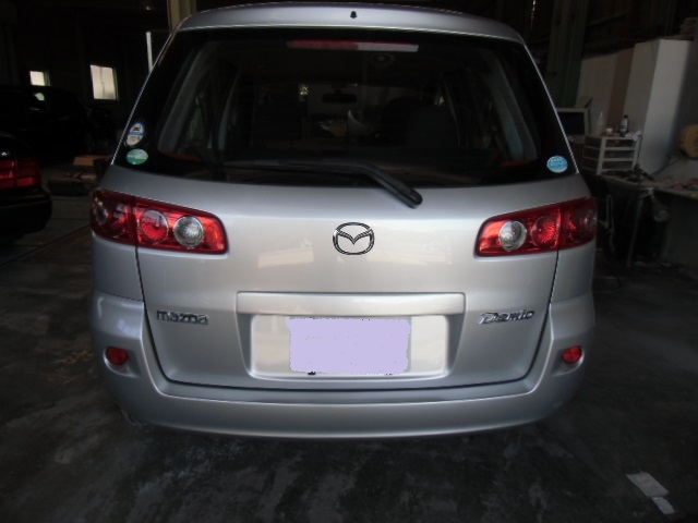 デミオ後部事故修理です。 リアバンパーは取替、バックドアは修理をいたしました。